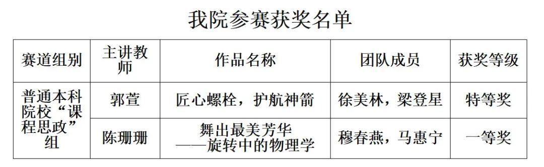 该比赛以“擎信仰之炬 扬理想之帆”为主题,旨在引领各学段、各类课程根据课程育人目标和教学要素,找准切入点,实施思政课程和课程思政教学设计,实现大中小学资源互通、教学融通、有效衔接的协同效应。比赛分校内初赛、网络评审复赛、现场展示决赛三个阶段,设立普通本科院校、高职院校、中职院校、中小学四个组别及思政课程和课程思政两个赛道。其中,普通本科院校课程思政组每个高校推荐4名选手参赛,先对参赛作品(讲课视频)进行网络评审,选出15+10共25名选手参加决赛,根据线上评审成绩高低,其中15名参加现场展示决赛(郭萱和陈珊珊均入围现场决赛),另外10名不参加现场比赛,直接认定三等奖。现场比赛的15名选手中,评选出特等奖2名,一等奖5名,二等奖8名。