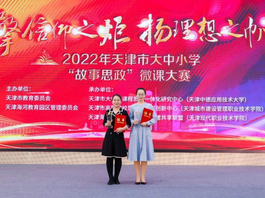 2023年1月12日,天津市教育委员会和天津海河教育园区管委会共同举办了2022年天津市大中小学“故事思政”微课大赛现场展示决赛,在普通本科院校“课程思政”组中,我院基础部教师郭萱作为主讲教师的课程团队获得特等奖,基础部教师陈珊珊作为主讲教师的课程团队获得一等奖。本次获奖是我院在市级教学竞赛中获奖层次和级别上的新突破。