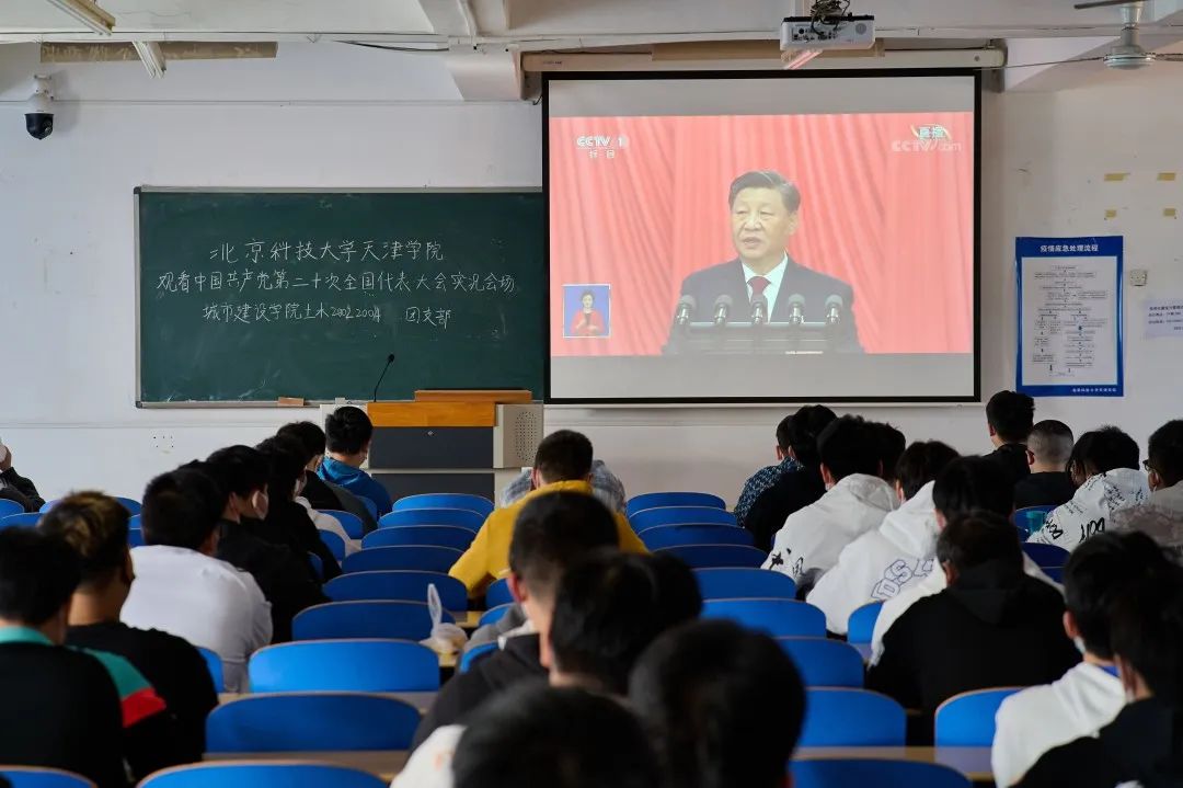 10月16日上午10时,中国共产党第二十次全国代表大会在北京人民大会堂隆重开幕,习近平总书记代表第十九届中央委员会向大会作了报告。天津市教委组织处副处长滑杰、学院领导班子、广大师生全程收看了党的二十大开幕会现场直播盛况,认真聆听了习近平总书记所作的工作报告。